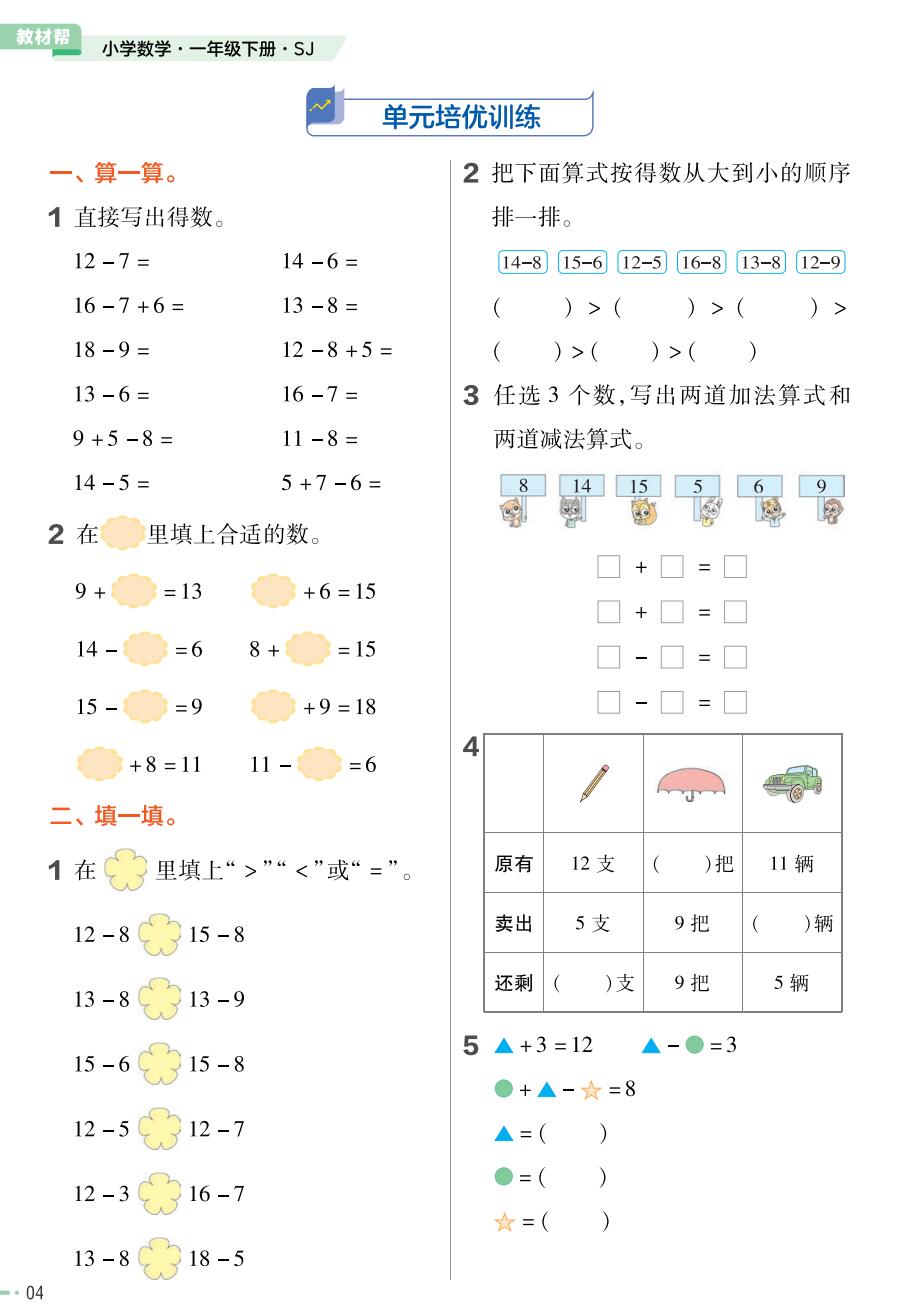 本资料来自专辑:2023版苏教版一年级下册数学《教材帮》配套作业帮小册子 2023版苏教版一年级下册数学《教材帮》配套作业帮小册子 资源下载此资源下载价格为2.5学币,VIP免费,请先登录资源每日更新! 升级终身VIP会员,享全站终身永久免费下载特权!限时优惠!如有问题,请联系客服QQ:6056064