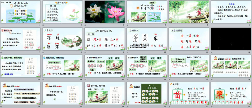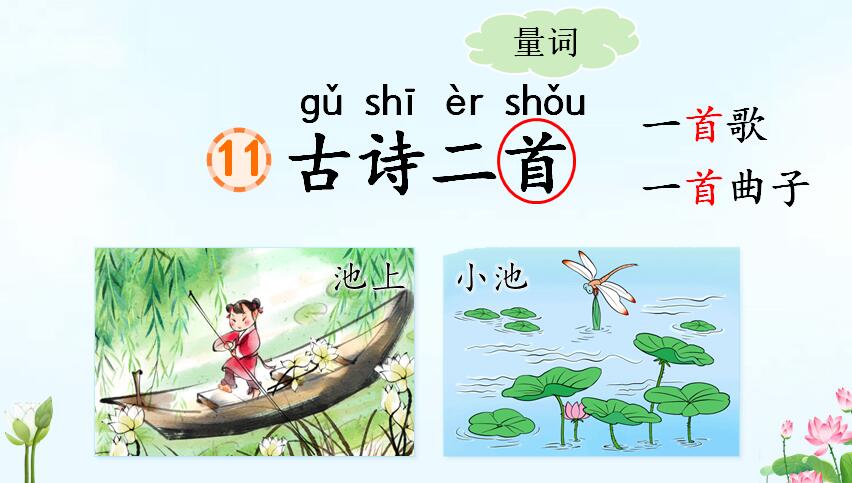 本资料来自专辑:人教部编版统编版一年级下册语文PPT课件汇总 一年级下册语文第11课《古诗二首》PPT课件 资源下载此资源下载价格为3学币,VIP免费,请先登录资源每日更新! 升级终身VIP会员,享全站终身永久免费下载特权!限时优惠!如有问题,请联系客服QQ:6056064