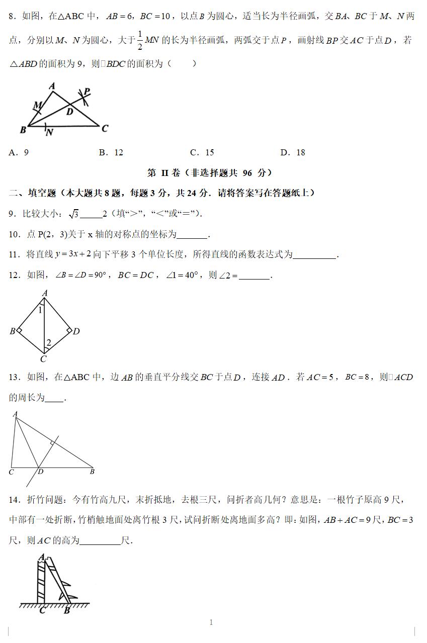 2.在平面直角坐标系中,点(-1, 2)所在的象限是( )