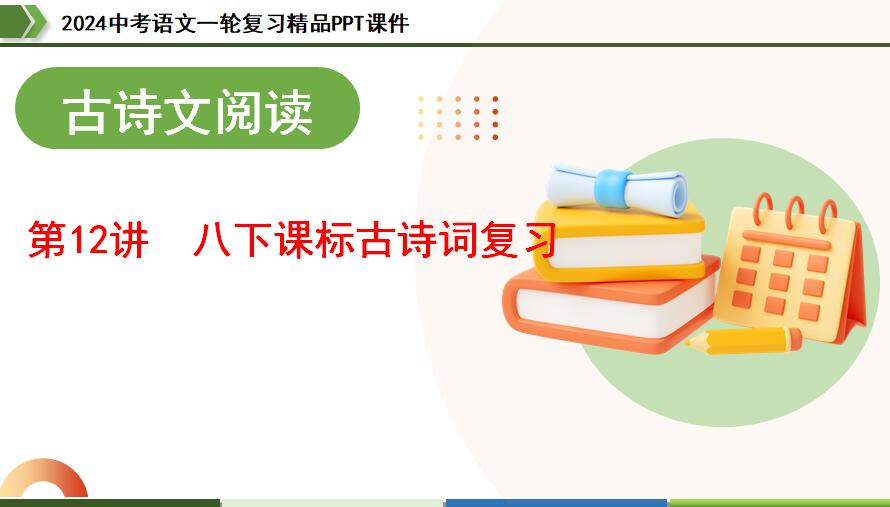 本资料来自专辑: 2024年中考语文一轮复习精品PPT课件(全国通用) 2024年中考语文一轮复习精品PPT课件: 第01讲 巧辨字音字形-2024年中考语文一轮复习精品PPT课件(全国通用) 第02讲 词语理解运用... 查看文章 第12讲 八下古诗词复习-2024年中考语文一轮复习精品PPT课件(全国通用) 资源下载此资源下载价格为2.5学币,VIP免费,请先登录资源每日更新! 升级终身VIP会员,享全站终身永久免费下载特权!限时优惠!如有问题,请联系客服QQ:6056064