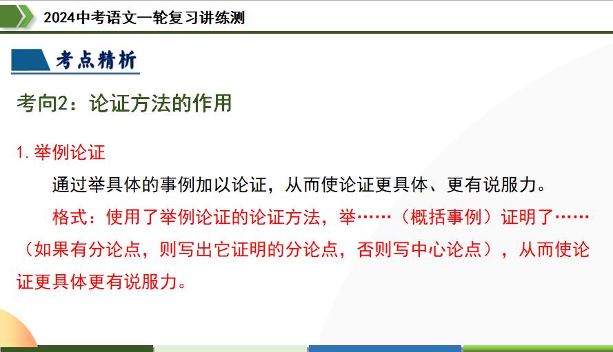 本资料来自专辑: 2024年中考语文一轮复习精品PPT课件(全国通用) 2024年中考语文一轮复习精品PPT课件: 第01讲 巧辨字音字形-2024年中考语文一轮复习精品PPT课件(全国通用) 第02讲 词语理解运用... 查看文章 第30讲 论证方法及其作用-2024年中考语文一轮复习精品PPT课件(全国通用) 资源下载此资源下载价格为2.5学币,VIP免费,请先登录资源每日更新! 升级终身VIP会员,享全站终身永久免费下载特权!限时优惠!如有问题,请联系客服QQ:6056064