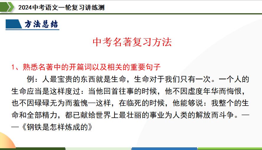 本资料来自专辑: 2024年中考语文一轮复习精品PPT课件(全国通用) 2024年中考语文一轮复习精品PPT课件: 第01讲 巧辨字音字形-2024年中考语文一轮复习精品PPT课件(全国通用) 第02讲 词语理解运用... 查看文章 第38讲 九年级名著导读梳理-2024年中考语文一轮复习精品PPT课件(全国通用) 资源下载此资源下载价格为3学币,VIP免费,请先登录资源每日更新! 升级终身VIP会员,享全站终身永久免费下载特权!限时优惠!如有问题,请联系客服QQ:6056064