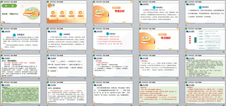 本资料来自专辑: 2024年中考语文一轮复习精品PPT课件(全国通用) 2024年中考语文一轮复习精品PPT课件: 第01讲 巧辨字音字形-2024年中考语文一轮复习精品PPT课件(全国通用) 第02讲 词语理解运用... 查看文章 第40讲 审题定中心-2024年中考语文一轮复习精品PPT课件(全国通用) 资源下载此资源下载价格为3学币,VIP免费,请先登录资源每日更新! 升级终身VIP会员,享全站终身永久免费下载特权!限时优惠!如有问题,请联系客服QQ:6056064
