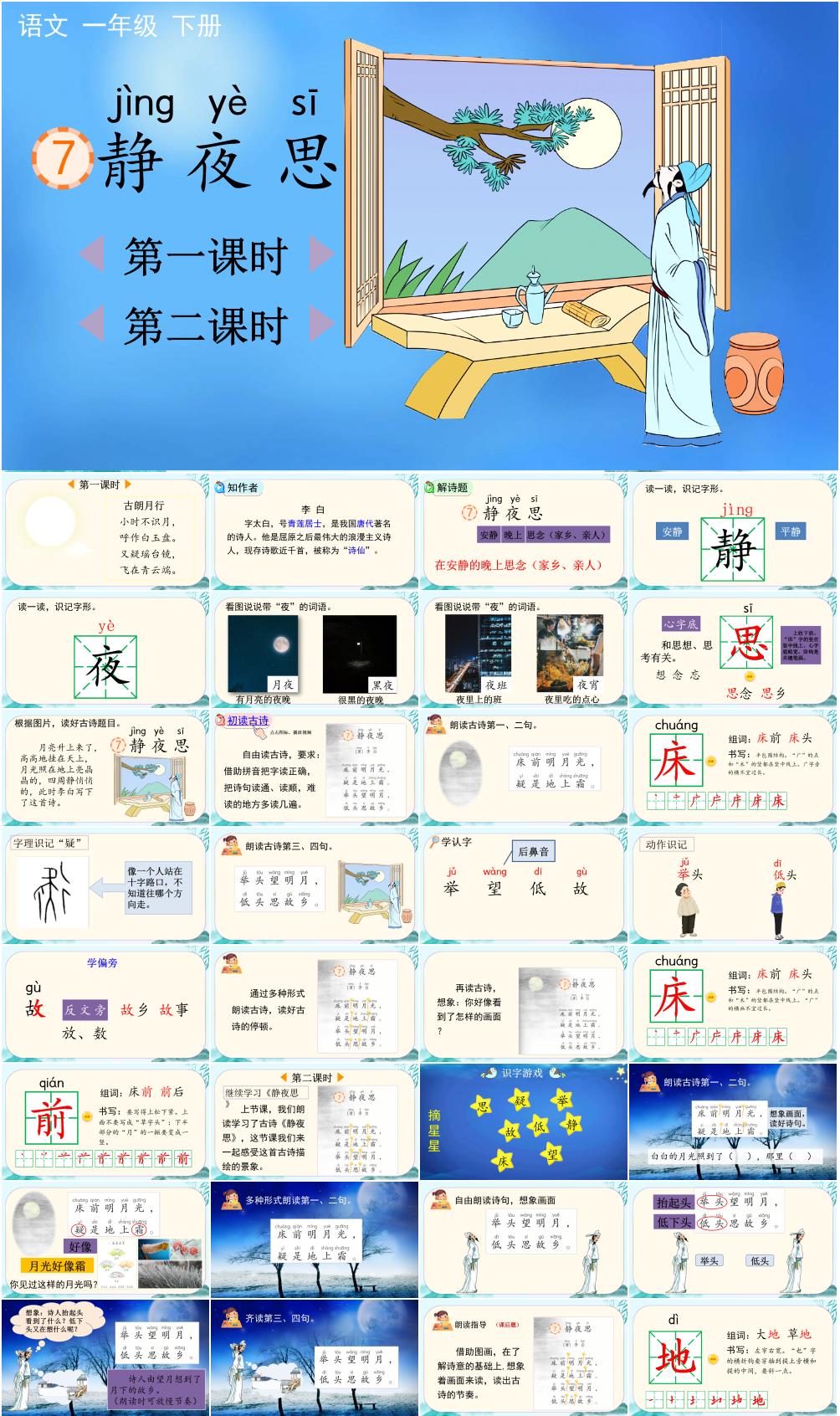 本资料来自专辑: 2025年春一年级语文下册PPT课件汇总(统编版2024新教材) 2025年春一年级语文下册PPT课件汇总(统编版2024新教材): 第一单元: 2025年春一年级语文下册识字1《春夏秋冬》PPT课件(统编版... 查看文章 2025年春一年级语文下册阅读7《静夜思》PPT课件(统编版2024新教材) 资源下载此资源下载价格为3.5学币,VIP免费,请先登录资源每日更新! 升级终身VIP会员,享全站终身永久免费下载特权!限时优惠!如有问题,请联系客服QQ:6056064